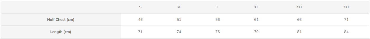 Sizes: S, M, L, XL, 2XL, 3XL